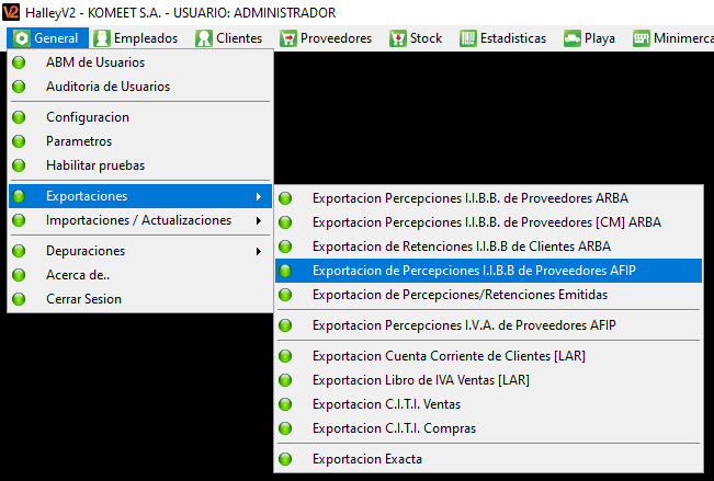 La exportación de Percepciones de I.I.B.B de Proveedores AFIP se utiliza para generar un archivo con todas percepciones que nos hacen los proveedores cuando se registran los pagos y se emiten los recibos de estos pagos. De esta manera, no se cargan manualmente una a una en los sistemas de AFIP, sino que se cargan todas juntas por un solo archivo. Esta exportación se realiza por un periodo de fechas, generalmente quincenal o mensual.