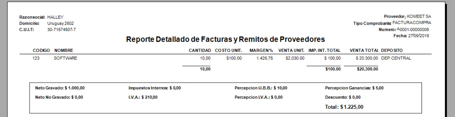 Este reporte nos muestra la composición de las facturas o remitos de los proveedores cargadas en el sistema.