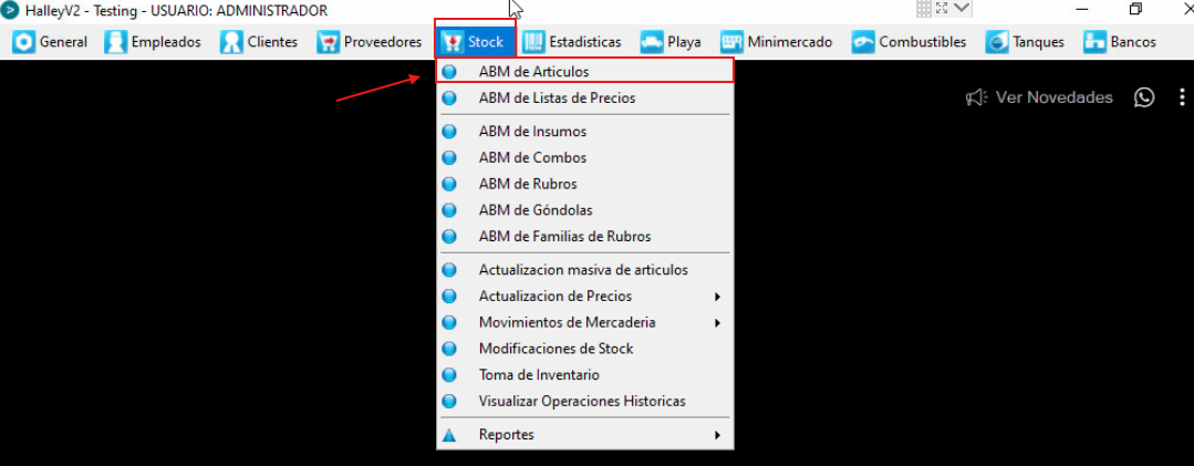 - En el menú principal, seleccione Stock → ABM de artículos.