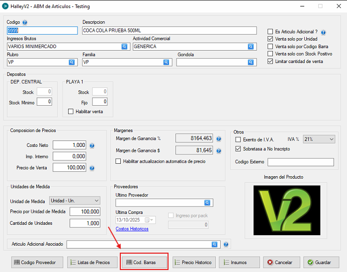 Paso 4: Agregar / Editar Código de barras + Imagen del artículo