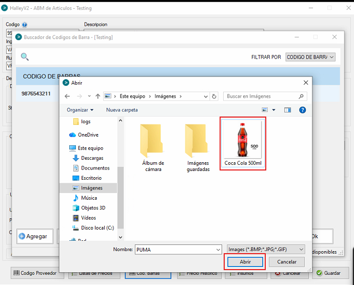 - Es requisito que el artículo tenga un código de barras cargado para poder asociarle una imagen.
