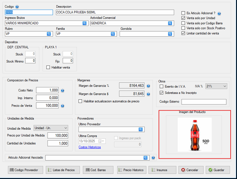 Una vez guardado, la imagen quedará asociada al artículo y podrá visualizarse en la parte inferior derecha de la pantalla.